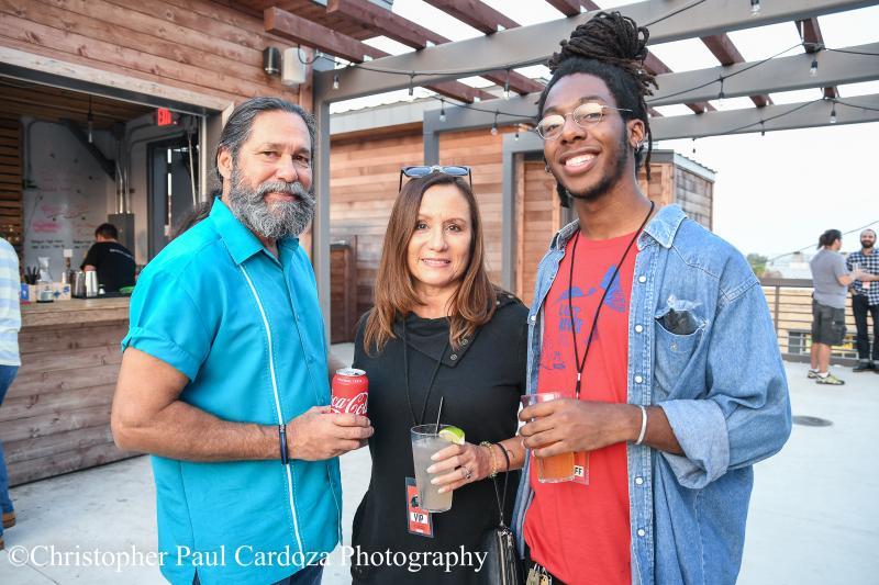 Local actor Antonio Palacios, Arts Commissioner Anita Azenet and Cinema Club member Tafari Robertson at AquaBrew.