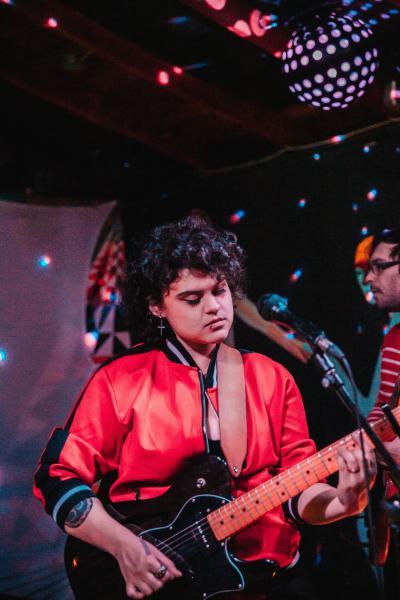 Serrano plays guitar during a set at a Tribute To Scorpio Pop Stars show hosted by Kady Rain and Kim Trails. Photo by Sara Petees