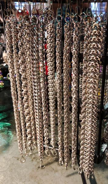 One day she saw a gentleman with a wallet chain. After a brief conversation, she learned his daughter made it for him; that she made chainmaille jewelry.