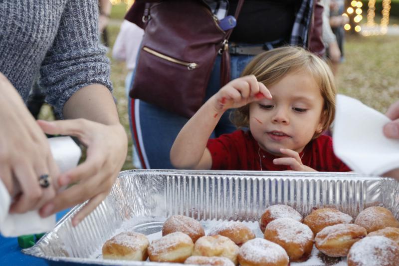 The festivities include foods eaten in Israel and around the world on Chanukah like Latkes and Sufganiyahs, deep-fried jam-filled doughnuts.