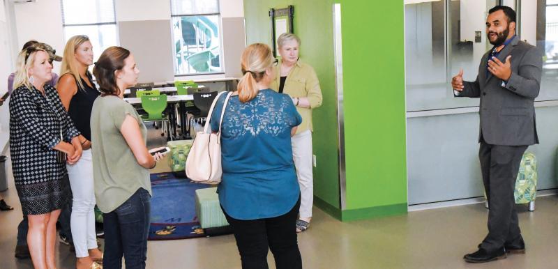 Rodriguez Elementary School Principal Kash Greathouse gives a tour of San Marcos Consolidated ISD’s newest school following a ribbon-cutting ceremony in August.