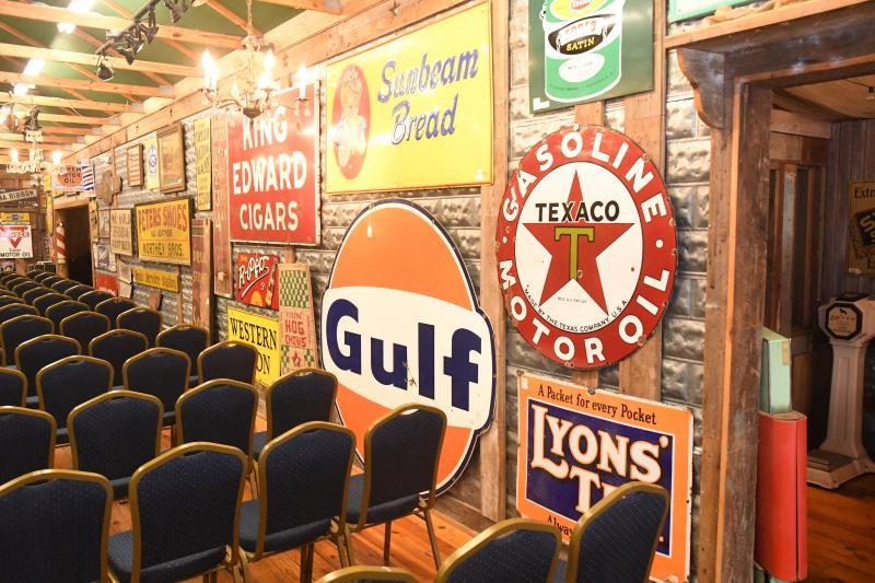 Antique signs line the walls inside Centerpoint Station for an auction of founder J. Garland Warren's personal collection.