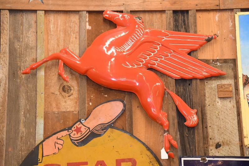 Thursday morning Burley’s crew was still setting up items for the auction, which features porcelain signs, gas and oil signs, antique soda signs, antique vending machines, painted wood furniture and country store counters. A preview will be held Friday inside the building at 3946 S. Interstate 35 from 10 a.m.- 6 p.m.