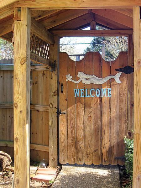 A striking mermaid figurine on the wooden gate of the Butler's home, the 2018 February Yard of the Month recipients, adds a pop of color and life to the yard.