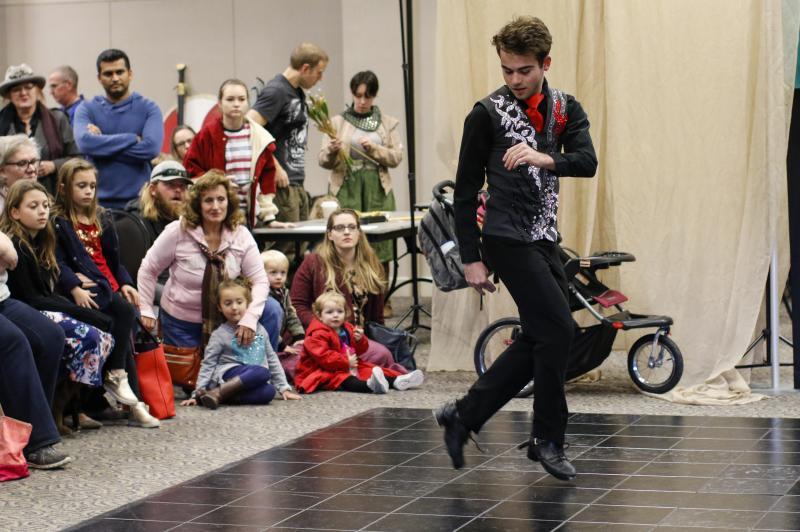 Gavan Mooney of the of Inishfree School of Irish Dancing performs in front of a crowd during the 2019 festival.