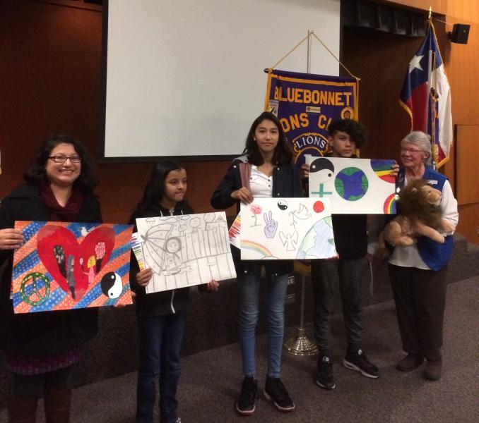 San Marcos Bluebonnet Lions Club President Trish Wilder said she was impressed by the expression and creativity of the students at both Miller and Goodnight Middle Schools. “It is obvious that these young people have strong ideas about what peace means to them. I’m so proud that we were able to provide them with the opportunity to share their visions.”