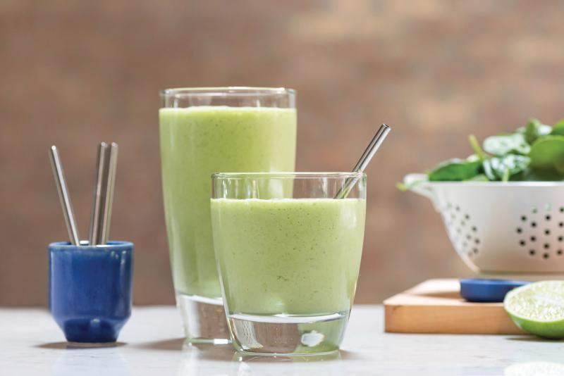 1. In blender, blend spinach, milk, banana, pineapple, lime zest, juice of one lime wedge, coconut oil, vanilla extract, cinnamon and ice, if desired, until smooth. If refrigerating prior to serving, omit ice.