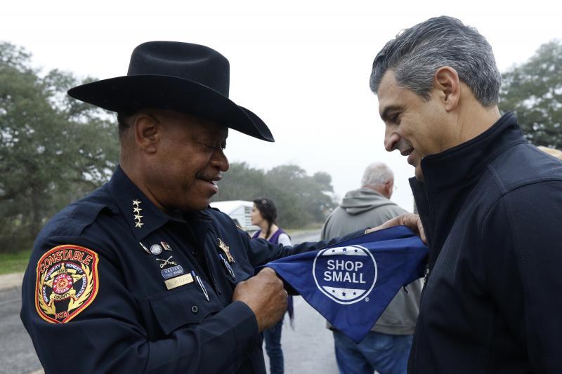 The Greater Randolph Area Trail Riders, led by Joe Coldewey, made their annual stop in San Marcos Monday. Joining this year’s ride was County Judge Ruben Becerra, who is assisted by Constable David Peterson. Daily Record photos by Denise Cathey