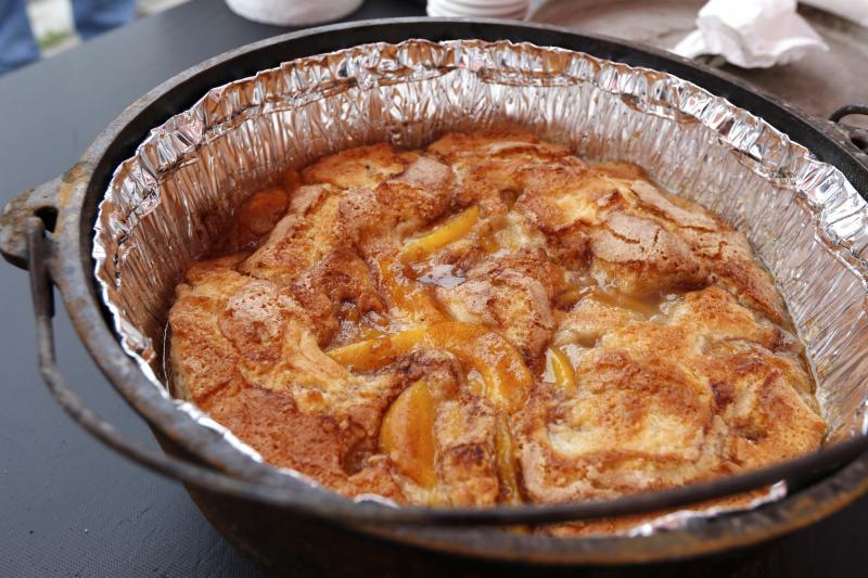 Peach cobbler that was served free to all who showed up to wish the riders well.