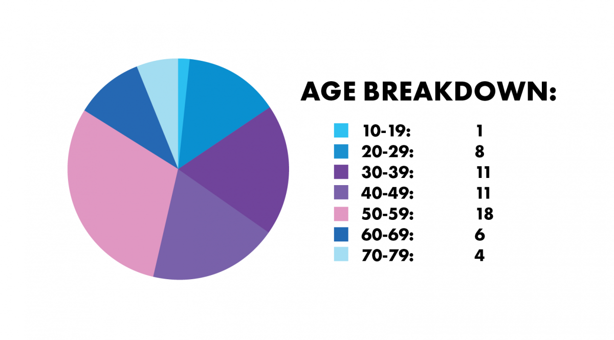 Eighteen residents who have been diagnosed with COVID-19 fall in the 50-59-year-old age range. Eleven patients are between 30-39 years old. Eleven people with the disease are 40-49 years old. Eight residents fall in the 20-29 year old age range. Six patients are 60-69 years old, four are 70-79 years old and one is between 10-19 years old.
