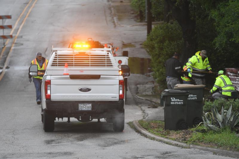 City of San Marcos employees working feverishly to unclog storm drains during Friday's weather event. Daily Record photo by Gerald Castillo