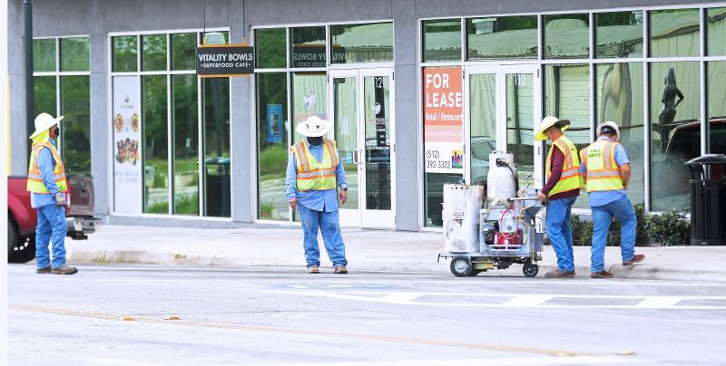 City crew member’s stripe parking spaces on E. Hutchison Street.