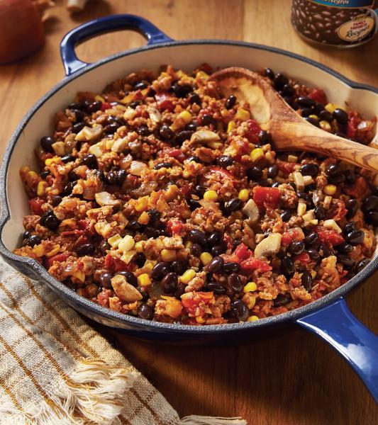 Make meat go further. A three-step cooking technique called “The Blend” combines finely chopped mushrooms with ground meat to create dishes that are more nutritious while still tasting delicious. You can use the process to create multiple dishes such as tacos, pasta sauce and burgers. Mushrooms’ ability to mimic the texture of meat makes them easy to incorporate, and the addition of finely chopped mushrooms to meat dishes stretches portions, allowing the family to enjoy a meat-mushroom base two days in a row in two different ways in dishes like Mexican Lasagna and Blended Tacos, both of which include a Mexican Mushroom-Beef Blend.