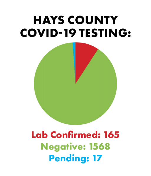 Hays County reported five additional COVID-19 lab-confirmed, positive cases Wednesday, raising the total to 165.