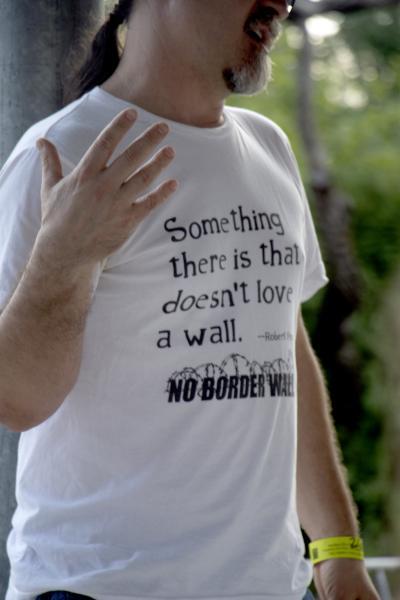 Scott Nicol, a member of No Border Wall, shows his sentiment with a T-shirt.