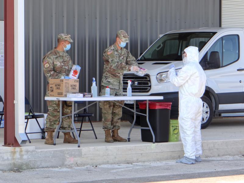 Hays County hosted two free COVID-19 testing locations on Sunday. Testing took place by appointment at sites in Wimberley and Dripping Springs from 8 a.m. to 5 p.m. provided by a partnership with the Texas Department of Health and Human Services and the Texas Army National Guard. According to Hays County Local Health Department Epidemiologist Eric Schneider, the health screening checked for symptoms, including fever/chills, cough, fatigue, shortness of breath, sore throat, headaches, nausea, diarrhea, vomiting and nasal congestion. Daily Record photos by Stephanie Calvino