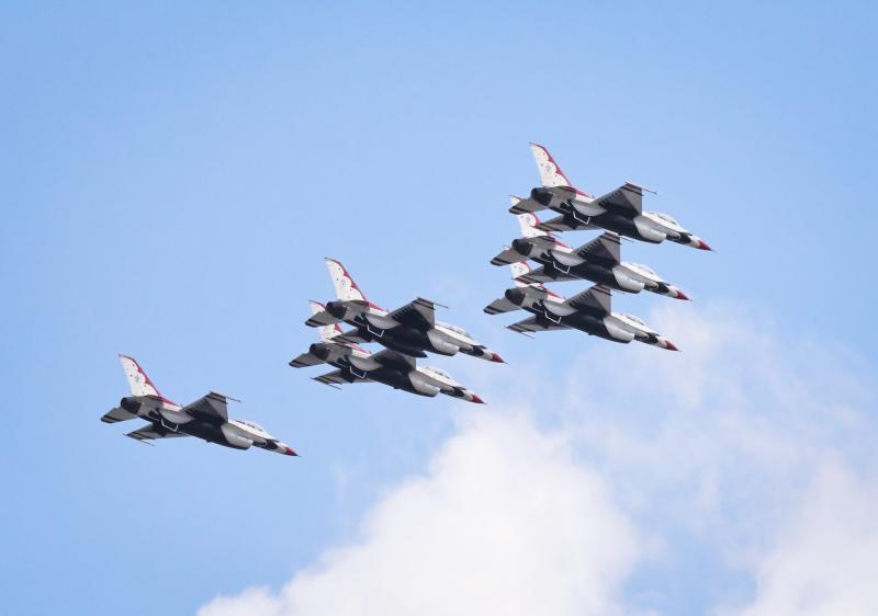 The U.S. Air Force Thunderbirds' F-16 Fighting Falcons squadron flew over Hays County on Wednesday