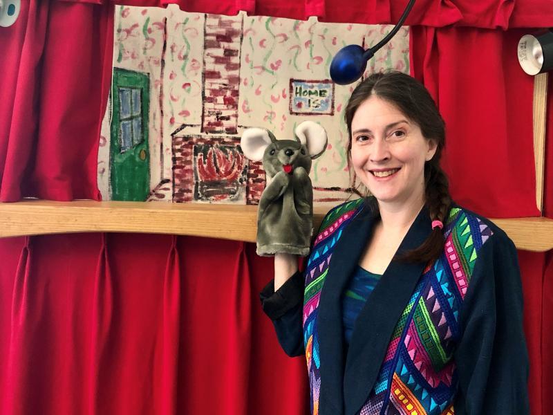 Childrens Librarian Ashley Schimelman hosts regularly streamed puppet shows and storytimes for children. Photo courtesy of the San Marcos Public Library
