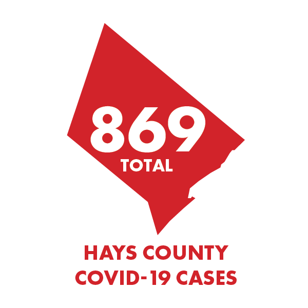 Hays County reported 54 new COVID-19 cases Sunday, raising the total count to 869.