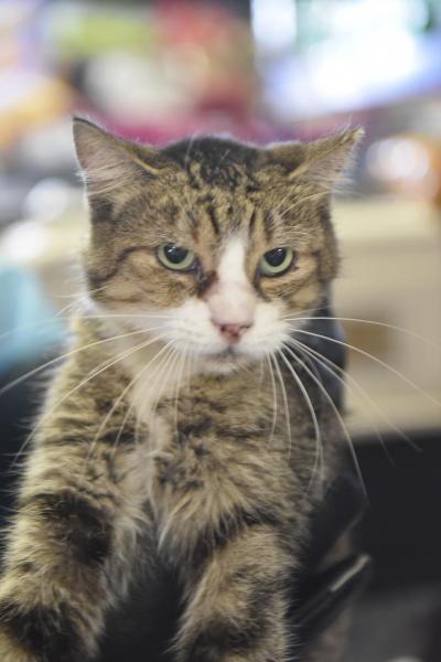 This 5-year-old boy is a proper gentleman! Momo is a domestic short hair tabby and has such loving eyes. He’s a little shy at first, but once he trusts you, he warms right up!
