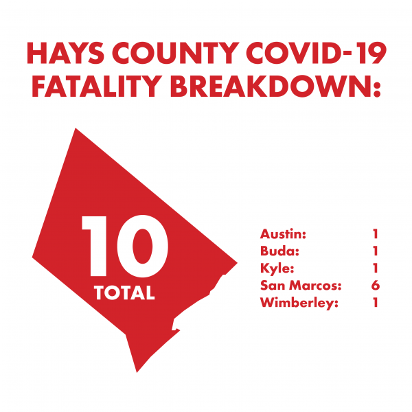 The county has now reported 10 coronavirus-related fatalities since the first diagnosis of the virus within Hays County on March 14.