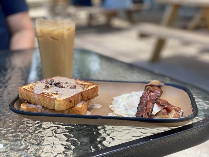 They also make a breakfast pizza. It's soft pita bread topped with scrambled eggs, queso and choice of bacon or sausage for only $7.99. Or maybe try the San Marcos Scramble. It comes with three fresh eggs scrambled — with ham, peppers, onions, tomatoes, and jack cheese. It’s also served with potato or sweet potato hash, a choice of bacon or sausage and a side of toast guaranteed to cure hunger pangs, all for $8.99.