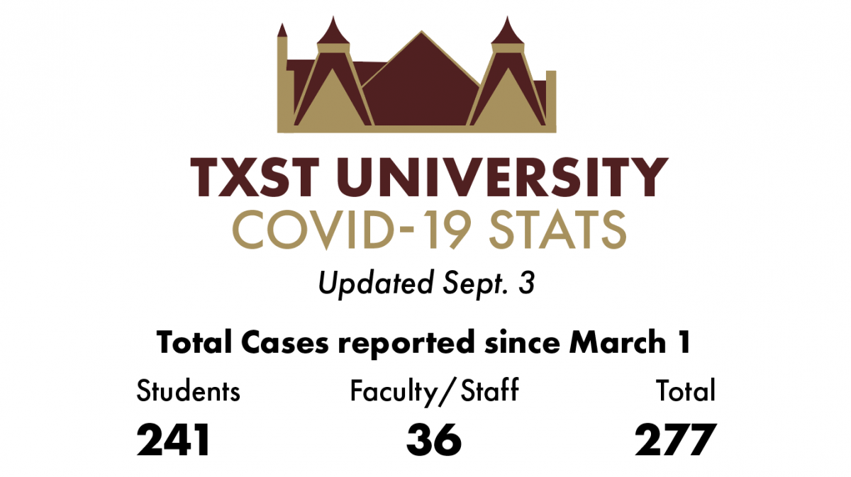 Texas State University has tallied 277 total coronavirus cases since March 1 as of Wednesday — 241 among students and 36 among faculty and staff.