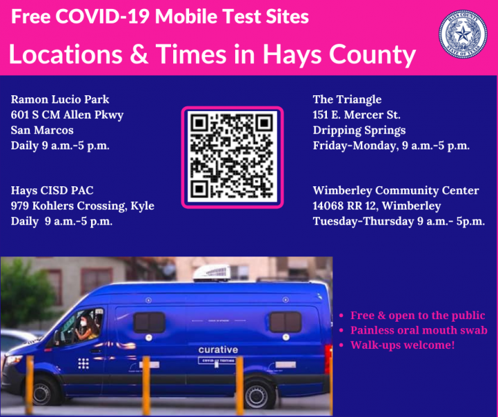 Testing will be offered daily at Ramon Lucio Park from 9 a.m.-5 p.m., beginning on Monday. Funding for testing is provided by the Texas Division of Emergency Management and will be managed jointly by Hays County and the City of San Marcos.