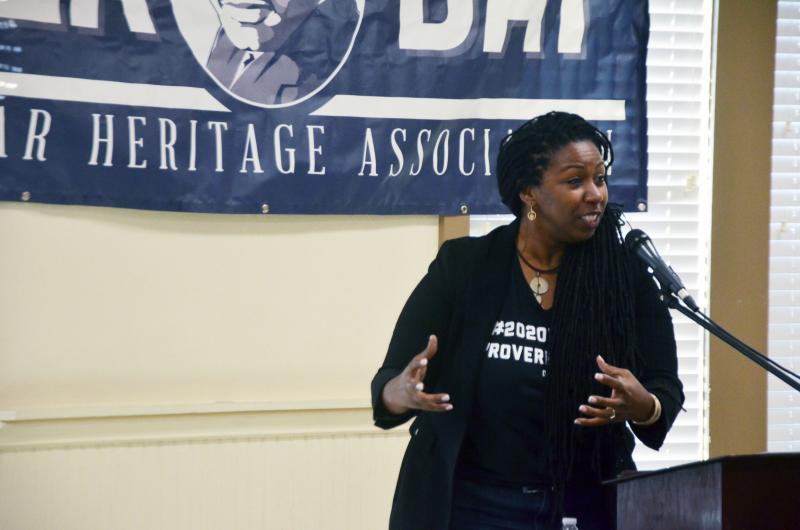 San Marcos High School Principal Denisha Presley delivers a speech as the distinguished 2020 MLK guest speaker. Daily Record photo by Nick Castillo