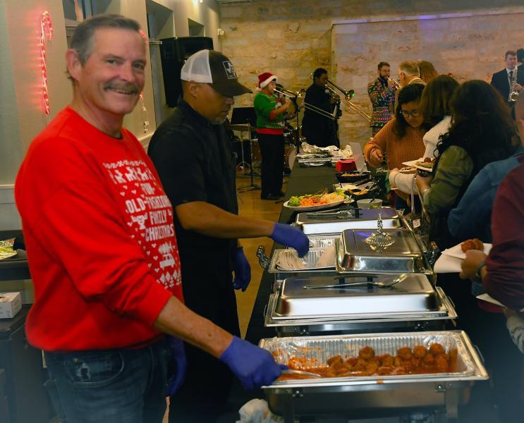 Bucky Couch helps serve food during Tuesday’s Sights & Sounds of Christmas kick off event.