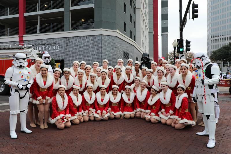 Above, performers from San Marcos High School's Diamond Line and Dazzlers pose for a group photo at the Dallas Holiday Parade on Dec. 4. Photos courtesy of San Marcos CISD