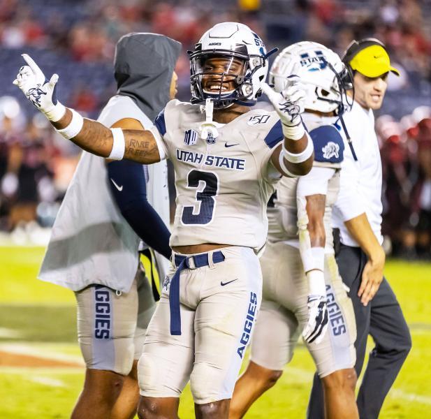 Troy Lefeged Jr. spent two seasons at Utah State, helping the Aggies earn a bowl bid in 2019. Photo courtesy of Wade Denniston, USU Athletics
